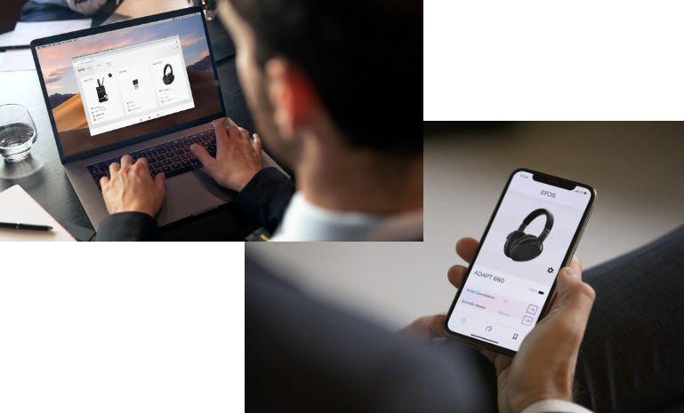 EPOS Connect「EPOS Connectは」最新のファームウェアへアップデートやオーディオデバイスの個別設定を行えます。 |