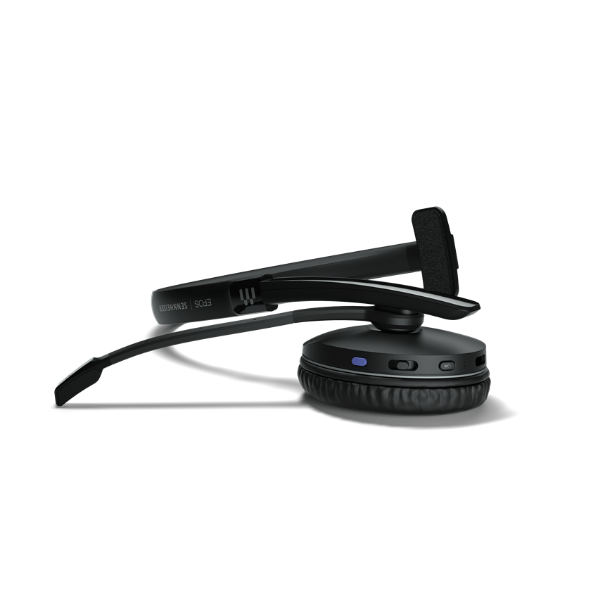 オンイヤー型、片耳Bluetooth ©ヘッドセット. 複数(同時に2台まで接続可能)のデバイスに簡単に接続で き、マイクブームを目立たないように収納で可能。どこにでも持ち運べるポータブルなヘッドセット。