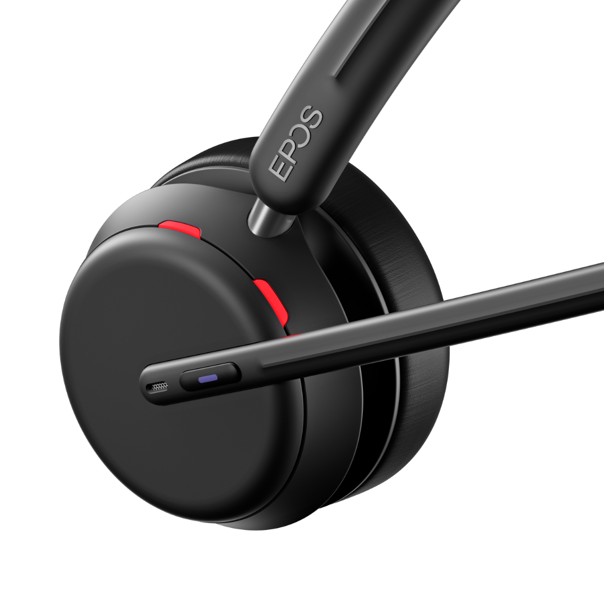 EPOS AI™による業界最高水準のマイク技術を搭載したワイヤレスヘッドセット(片耳)。