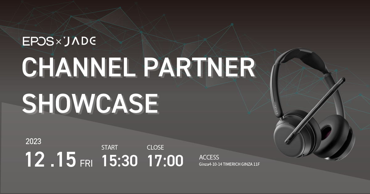 『EPOS×JADE チャネルパートナーショーケース Vol. 2』を開催が決定いたしました。 イベント概要 この度、皆様のさらなる販売活動をサポートすべく、EPOS社とジェイドコーポレーション共同で…